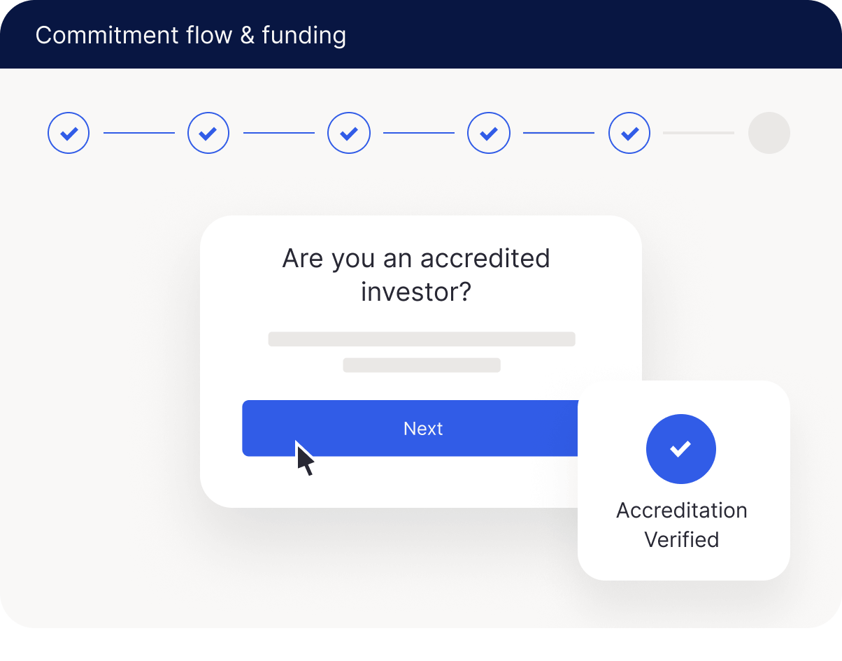 Empower investors to complete accreditation requirements directly from the investor portal or as a step in your commitment flow.
